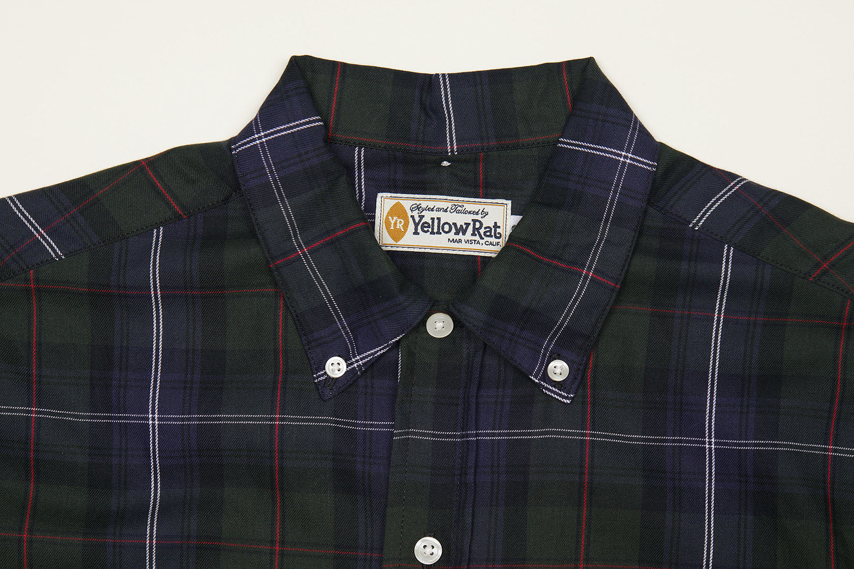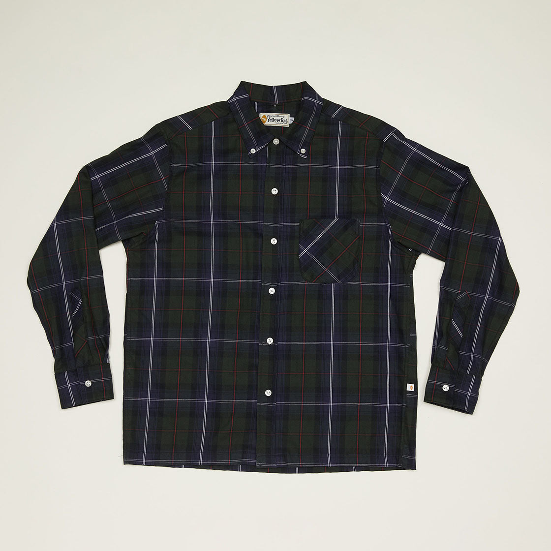 Convertible collar button-down shirt made of 100% cotton yarn dyed plaid. A unique combination of traditional button-down and a retro-style convertible collar. Left chest pocket. You'll have no problem spotting this shirt in many surf movies from the 50s. Perfectly matches peg-top and blue jeans.