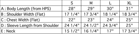 - Sizes : S, M, L, XL