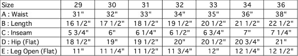 - Size 29, 30, 31, 32, 33, 34, 36"