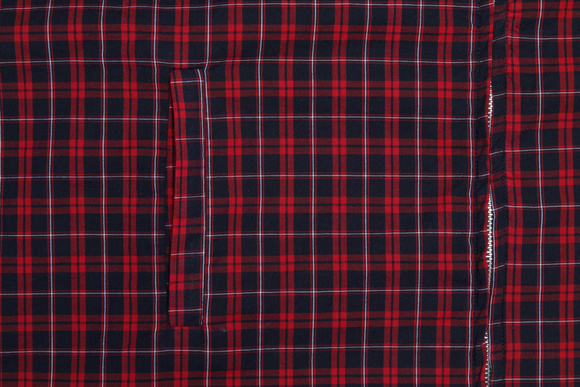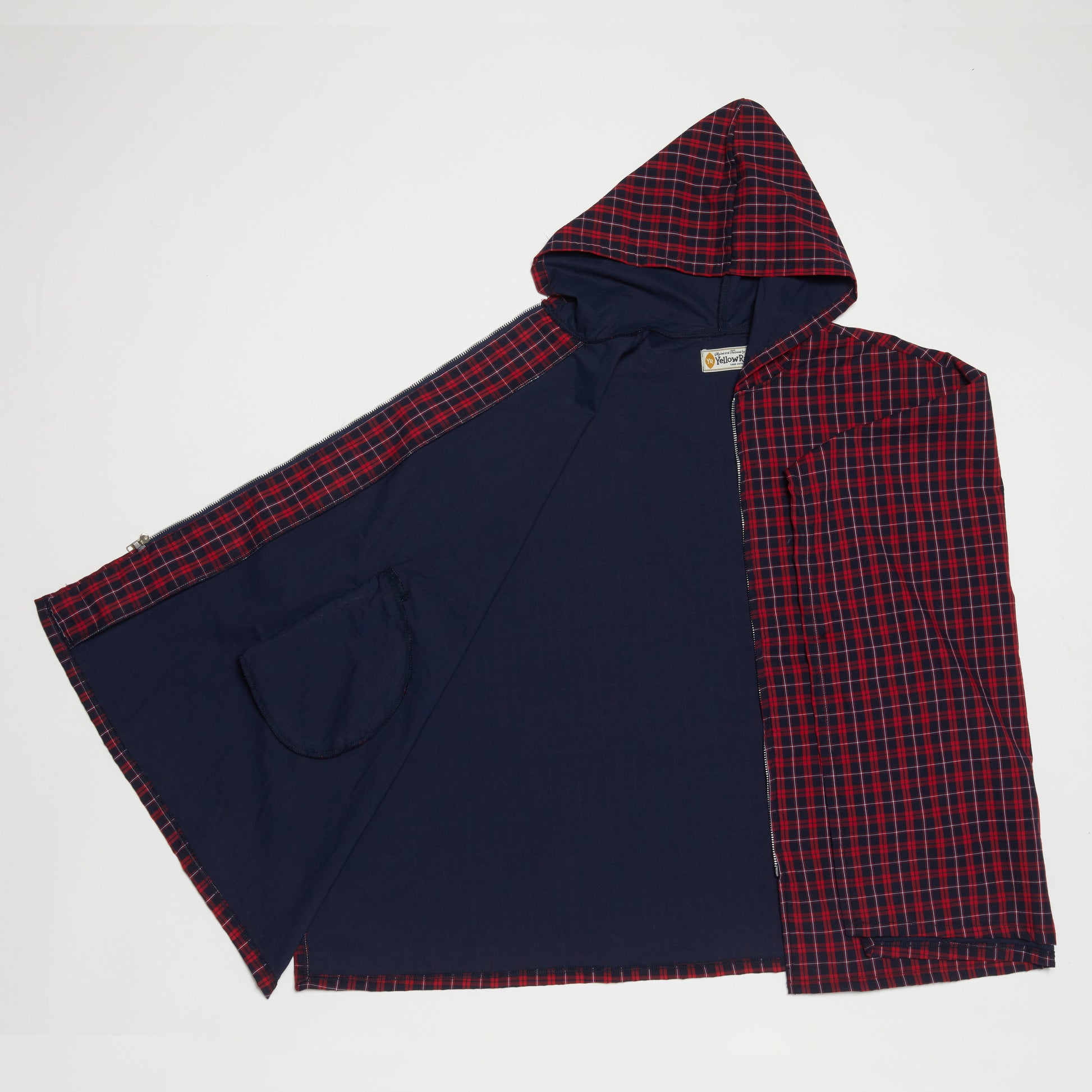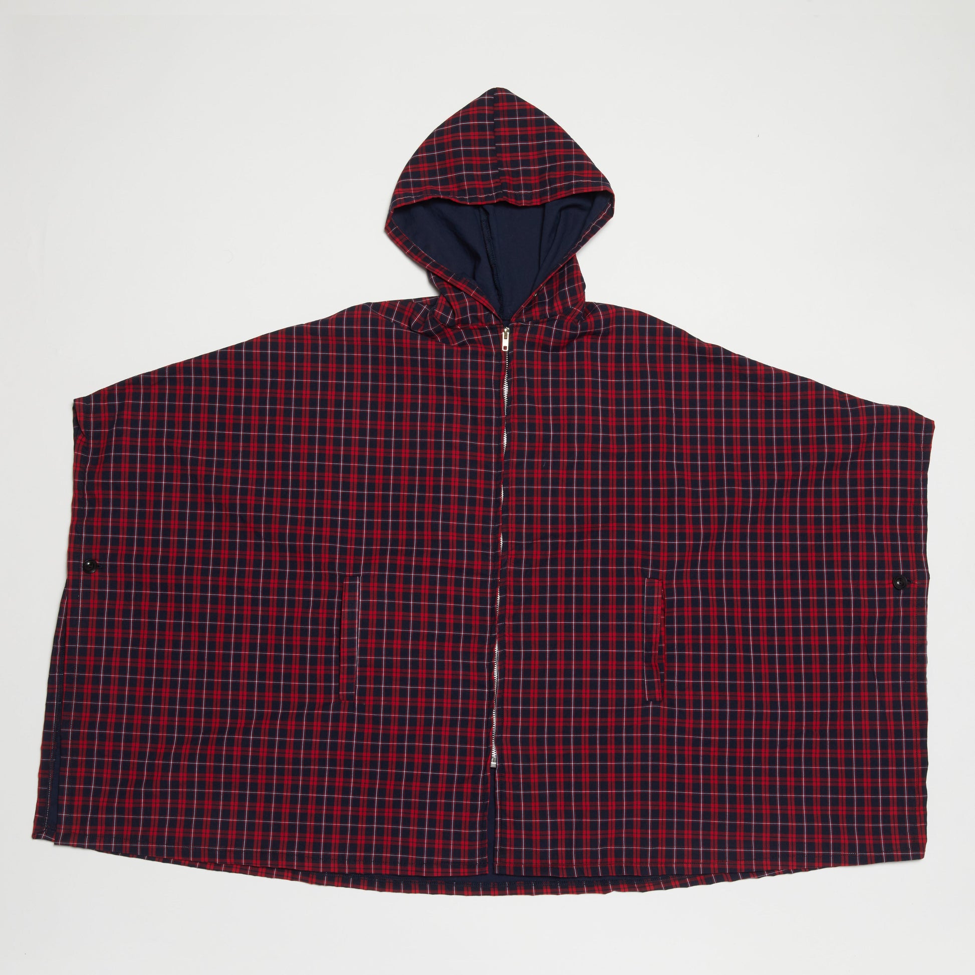 Poncho made of 100% cotton yarn-dyed plaid. Front zip-up, slash pockets, fully lined. The sleeve is created by fastening the button on the side. It also helps with morning and evening changes in air temperature and prevents sunburn.